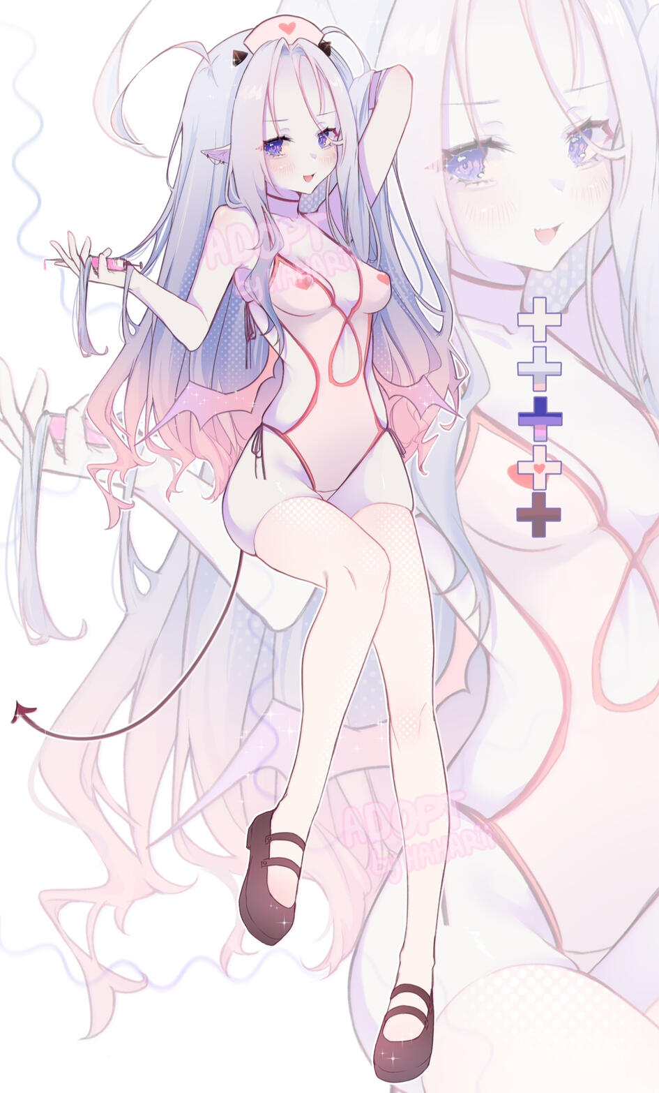Full rendered reference (front and back view, additional emotes, additional outfit/hairstyle + NSFW version + commerce.)- ~$400